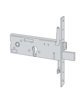 Serratura art. 56357.10 meccanica a cilindro da infilareEntrata 100 per fasce, 3 mandate, interasse 67 mm, frontale 22 mm.Frontale in acciaio inox 32 × 3 mm Catenaccio e scrocco reversibile